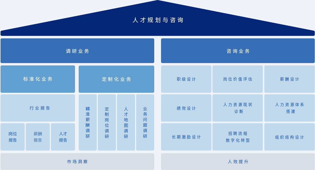 薪酬体系等进行定向分析,解决客户在设立业务、招聘人才等环节中遇到的问题。
